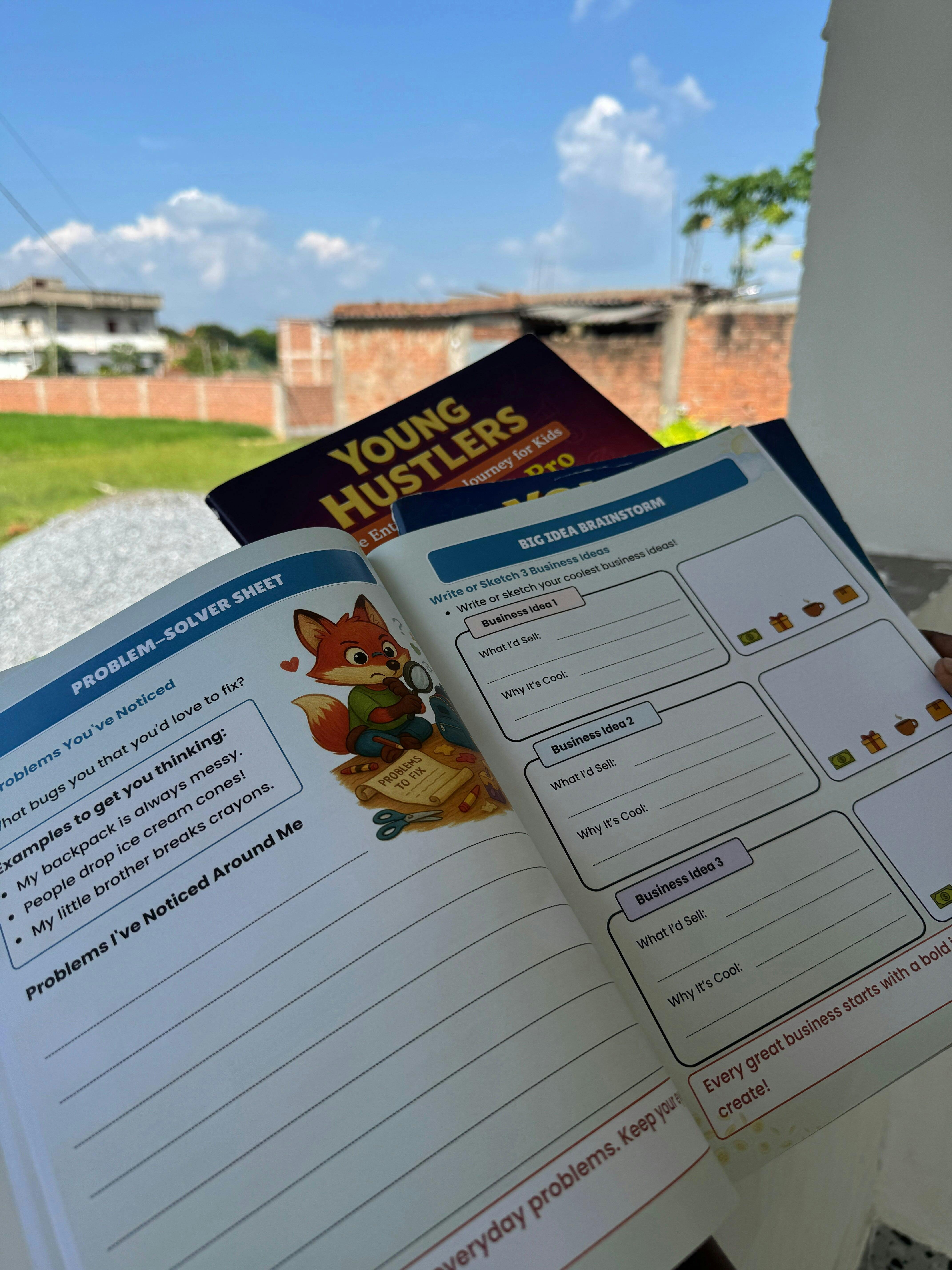 Give your child a playful path to real-world skills. With Indian ₹ examples, mini-projects, and simple prompts, Young Hustlers™ builds money smarts, confidence, and leadership—all in kid-friendly pages parents can trust.