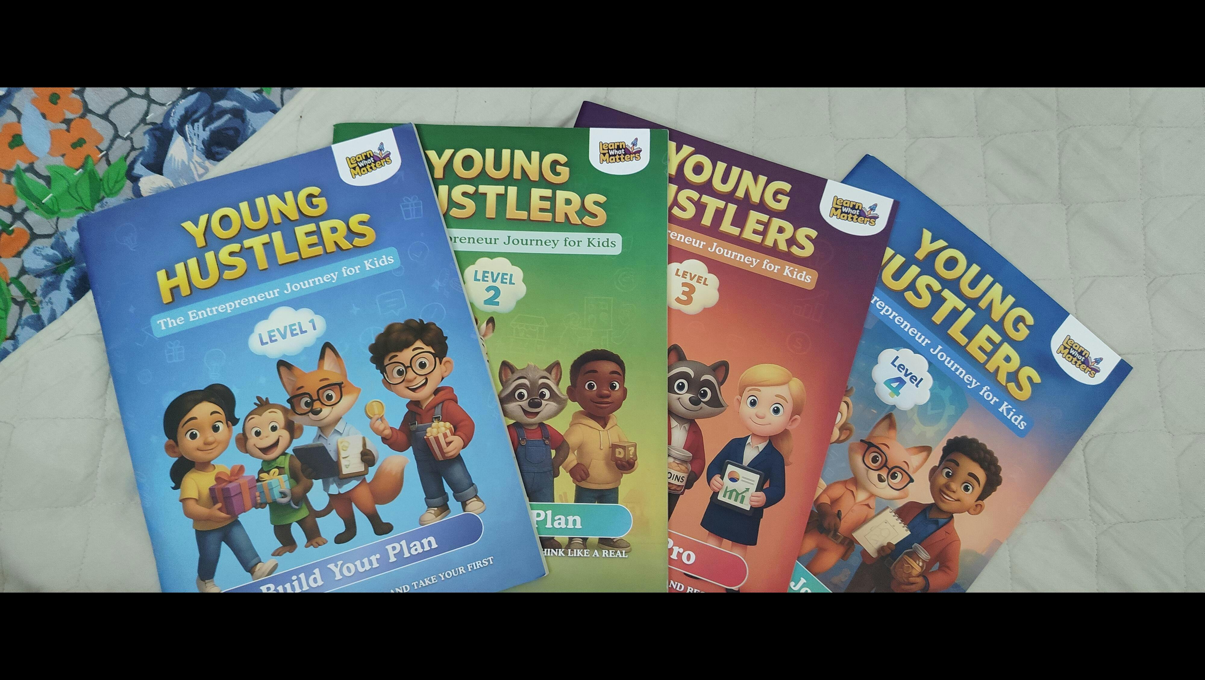 Young Hustlers™ is a 4-Level Kids’ Entrepreneurship Workbook Bundle designed for ages 6–12.
